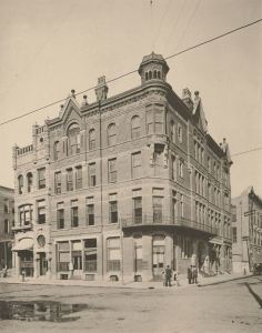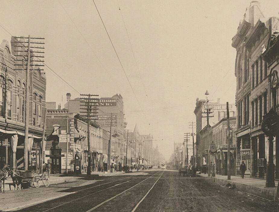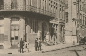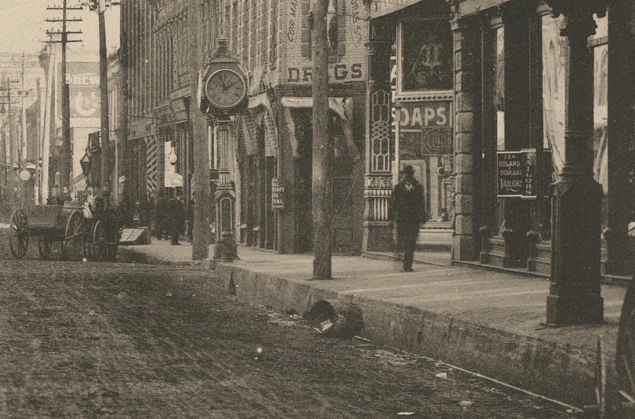 One day while browsing around eBay, I came across a perfectly nice postcard of Main Street — in fact, I don’t think I had ever seen the postcard — but I have to admit, I didn’t get really enthusiastic about it until I zoomed in on the “hat,” seen below in a cropped detail. From the May post “Whimsy on Main Street — ca. 1906.” (Source: eBay)