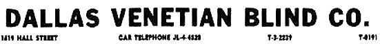 The owner of the Dallas Venetian Blind Company was J.S. “Joe” Herold. He was born in Austin in 1905 and moved to Dallas when he was a teenager. He started out in the floor finishing business and didn’t open his “Venetian blind concern” until many years later, in 1942. He was married, had a daughter, lived on Reiger near Fitzhugh, and enjoyed hunting and fishing. He was a “Square Deal” candidate for an East Dallas seat on the City Council in 1951, running against candidates representing the equally quaintly-named “Nonpartisan Association” and “Citizens’ Charter Association.” By 1960 he seems to have moved to Quitman, still fighting the good fight in the blinds game. But, sadly, far away from this wonderful little house which MUST have had Venetian blinds in those windows, even though I can’t see any! And now, Joe Herold — sit back — this is your life!