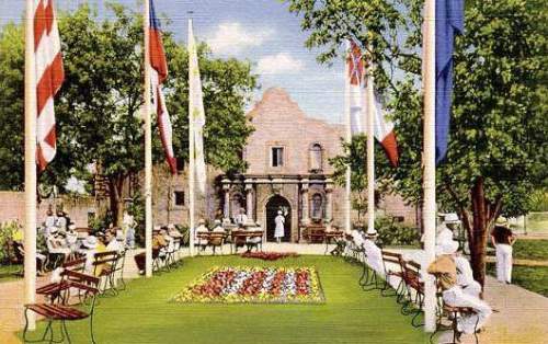 The replica was dedicated on the opening day of the fair in 1909, and curious crowds lined up to see the startlingly realistic reproduction of the building which Mayor S. J. Hay described as being “sacred to every patriotic citizen of the State.” The brand new Alamo (made to look old and worn and battle-scarred) was a hit. In fact, it seems to  have been a very popular exhibit for the length of its stay — a total of 42 years. Other than being visited by thousands and thousands of fair-goers and families and schoolchildren, it was also used to house soldiers briefly during both World War I and World War II. It was visited by numerous people who claimed to be related to Alamo heroes like Crockett, Bowie, and Travis, and there were even a couple of instances of visits by 100-year-old men who said they had known Crockett and Bowie when they were children.