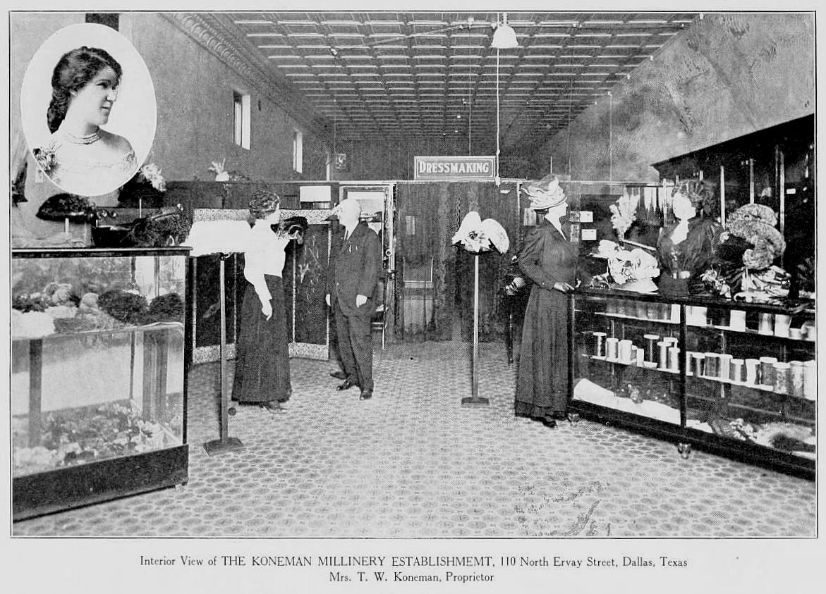 All other ads and articles from the Dallas Morning News. The Koneman Millinery ads were from 1913.