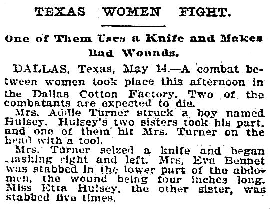 Mrs. Turner Attacked Miss Hulsey in the Spoolroom with a Knife