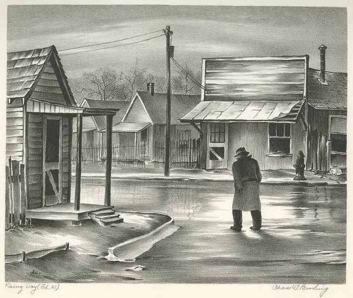 The top print is a lithograph by Charles T. Bowling (1891-1985) and is undated. (From the Bywaters Special Collections, Hamon Arts Library, Southern Methodist University.)