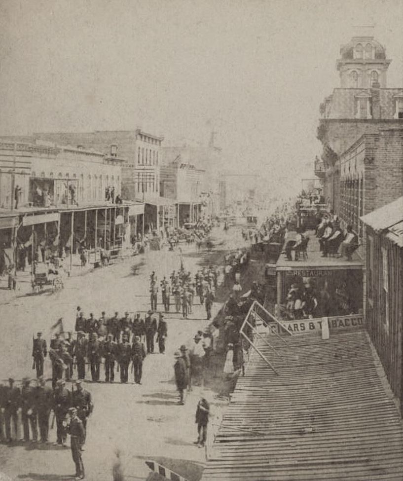 Fourth of July parade in Dallas, 1870s or 1880s. Bet it was hot in those uniforms.