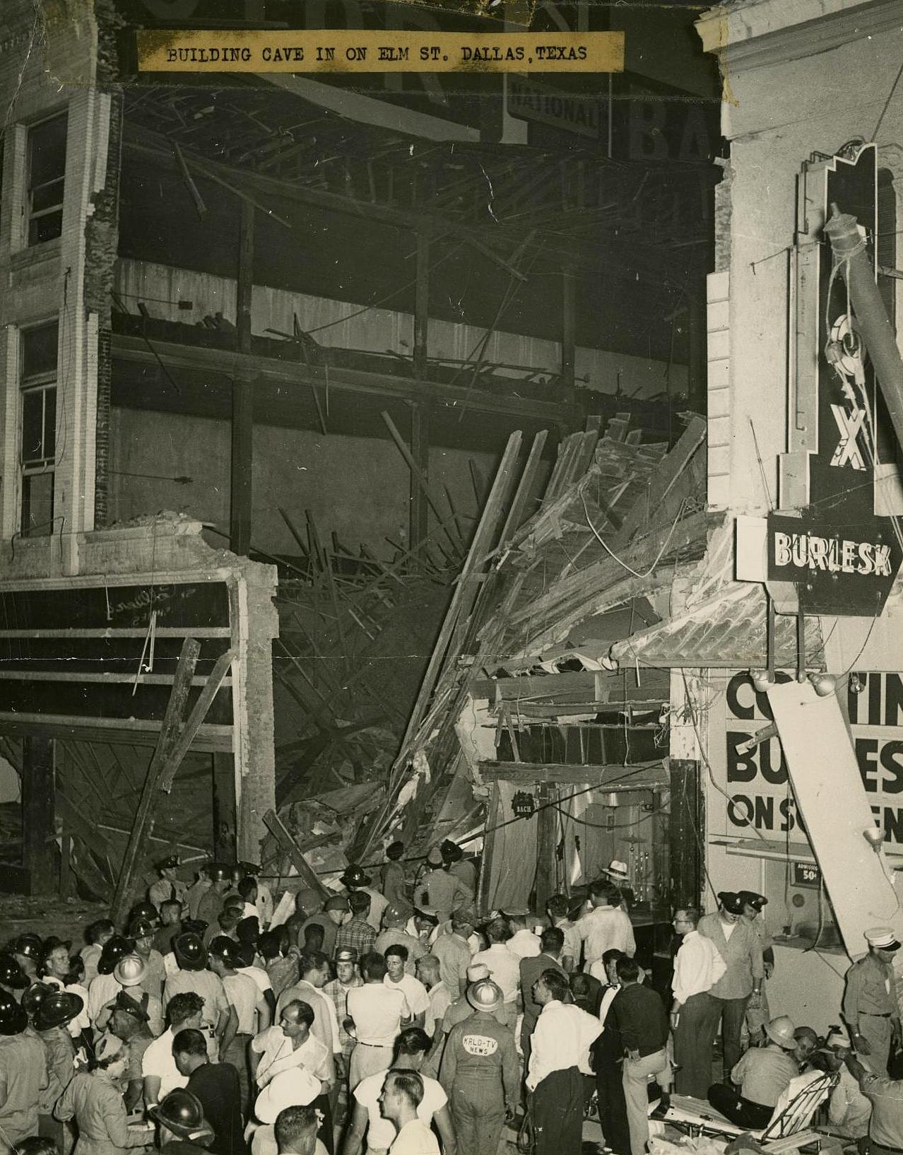 The rousing report in The Dallas Morning News the next day described the scene as pandemonium. As emergency personnel arrived and rescue operations began, the street was roped off — there were fears a partially standing wall would topple at any moment. The Fox Burlesk house next door was quickly emptied of its 50-or-so patrons for safety concerns.