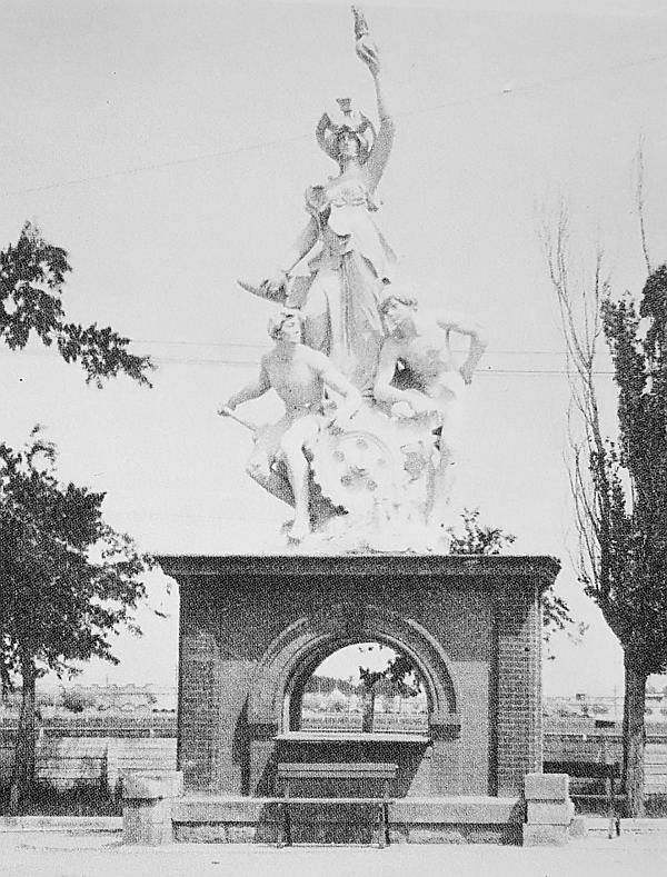 Photo of the Fair Park sculpture was taken in 1910. The Dallas Historical Society photo is captioned thusly by William L. McDonald in his book Dallas Rediscovered: “‘Progress,’ a sculptural monument to the promise of the age of technology which disappeared mysteriously just before the 1936 Centennial.” (THAT sounds like an interesting story!)