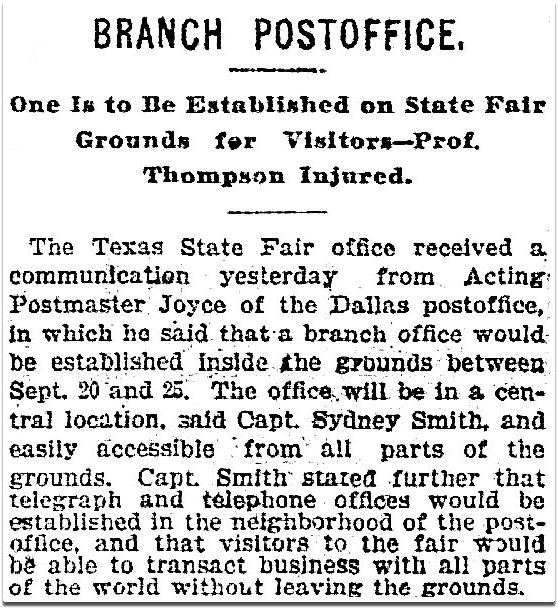 [I]t is no longer necessary for those doing business at the fair grounds to come down town, as the grounds constitute a completely appointed modern city, with all connection with the outside world. (Dallas Morning News, Sept. 25, 1901)