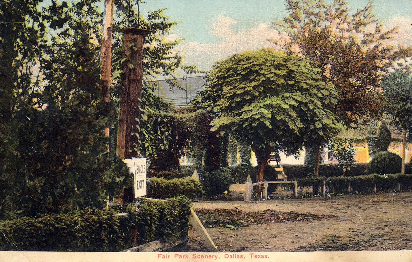 And then there’s this view, “Fair Park Scenery.” Same period as the top one? Later? It shows the “Vehicle Exit.” “Vehicles” meaning buggies and wagons?