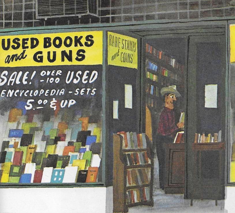 Honorable Mention: Not specifically Dallas-related, but it IS Texas-related: “‘Used Books & Guns’ — 1967.” I’ve updated the post with a photo, which may or may not be the actual San Antonio bookstore which appeared as an illustration in a children’s book.