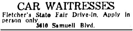 After the Fletcher’s Drive-In closed, it was replaced by a Red Coleman liquor store, and was most recently a club, El Palmeras. Google Street View shows the shabby neighborhood these days, here.
