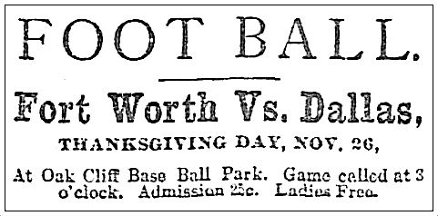 […] “Thanksgiving, 1891: The First Turkey-Day Football Game in Dallas” (2016) […]