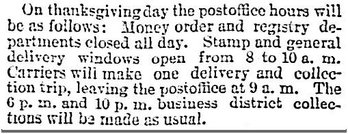 Almost everyone had the day off from work, but, oddly enough, most postal workers had to work at least part of the day. Neither rain nor sleet nor tender turkey breasts and cranberry sauce stayed those couriers from the swift completion of their appointed rounds, I guess.