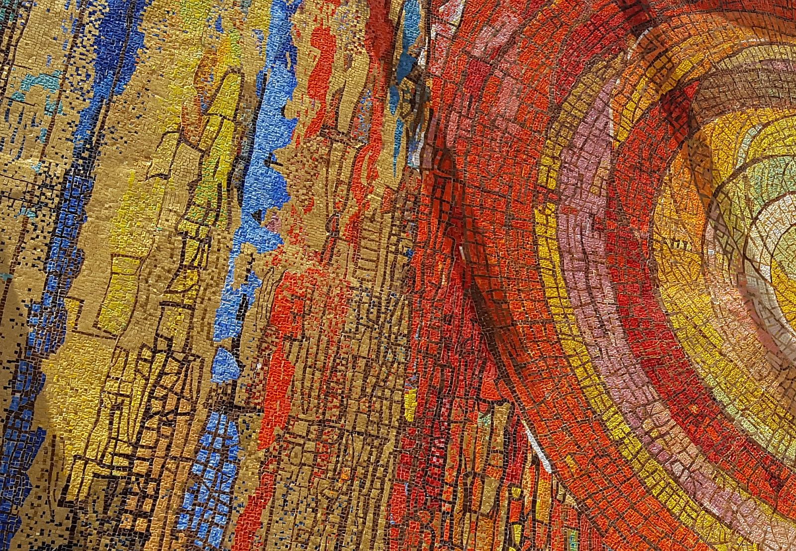 Below is part of the mosaic by Gyorgy Kepes — seeing it up close, you begin to realize that, yeah, there probably are more than 800,000 glass tiles up there. (Definitely click the photo to see a very large image.)