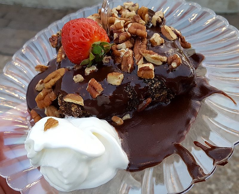 I also tried the Fried Texas Sheet Cake which was — and I can’t believe I’m saying this — too sweet, and just … too much. A bite would have been plenty. The topping of chocolate syrup and pecans was the best part. Maybe someone should offer a bowl of just that. …And then fry the whole thing — bowl and all. I’d probably try it.