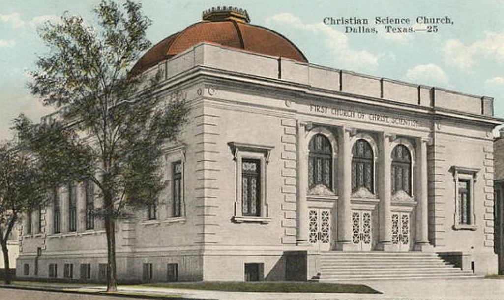 8. FIRST CHURCH OF CHRIST, SCIENTIST, corner of Cadiz & Browder, designed by Hubbell & Greene. This Christian Science church was built in 1910 on the southern edge of downtown for $100,000 (over 2.5 million dollars in today’s money). Following its days as a Christian Science church, it has had secular and non-secular occupants. It still stands (as a lonely building in what is mostly a sea of parking lots), and it is currently a house of worship once again. (See it on a 1921 Sanborn map, here.)
