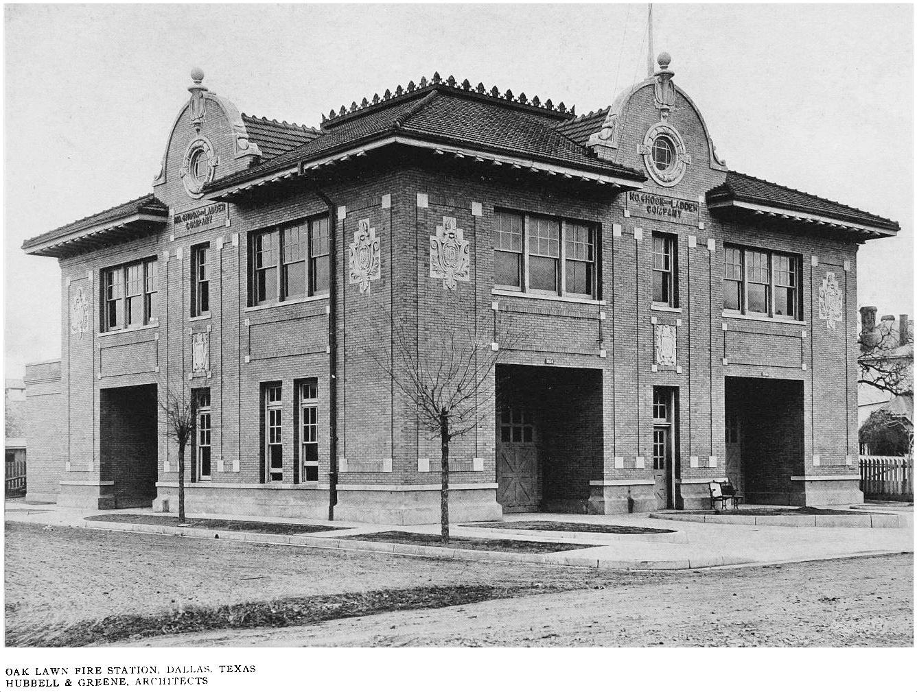 4. OAK LAWN FIRE STATION, Cedar Springs & Reagan, designed by Hubbell & Greene. This still-active firehouse (!) — Dallas’ first “suburban” fire station — was built in 1909 as the home of No. 4 Hook and Ladder Company. When construction of the building was announced, it was described as being a gray brick structure topped by a roof of “cherry red Spanish tiling.” It was — and still is — a beautiful building. (I’ve written about this firehouse previously, here.) (See it on a 1921 Sanborn map, here.)