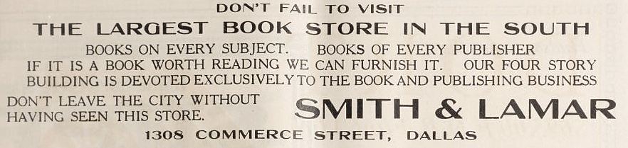 SMITH & LAMAR, Booksellers, 1305 Commerce Street. “Don’t fail to visit.”
