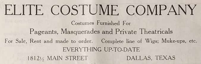 ELITE COSTUME COMPANY, 1812½ Main. AKA the Elite Dressmaking School & Costume Co., Miss Violet Blackmore, manager. “Everything up-to-date.”