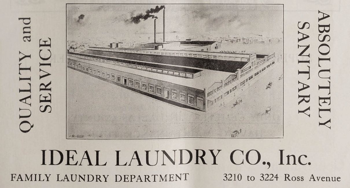 IDEAL LAUNDRY, 3210-24 Ross Avenue. Oh, Ross, I don’t even recognize you anymore…. “Absolutely sanitary.”