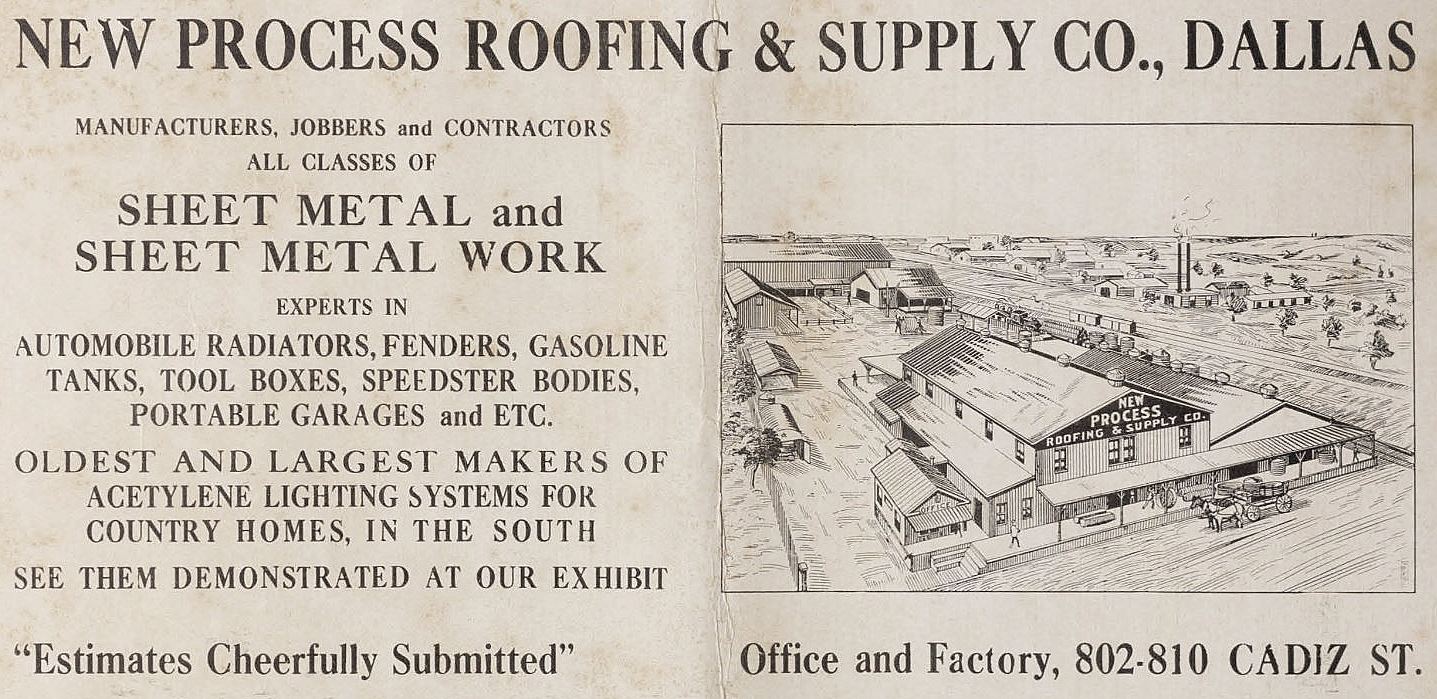 NEW PROCESS ROOFING & SUPPLY CO., 802-10 Cadiz (I think this is where the Alamo Drafthouse now sits).