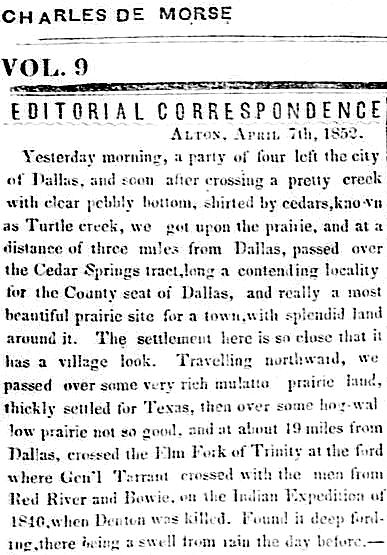 But for a totally inadequate one-paragraph summary of La Reunion, it was a colony of generally well-educated (and adventurous) French, Swiss, and Belgian immigrants, some of whom were political refugees from the unrest then spreading across Europe. They were led by Frenchman Victor Prosper Considerant (a follower of the democratic socialist Charles Fourier) — who began his settlement in 1854/1855 on land he had purchased just west of the Trinity River. A socialist commune … in Texas! But it was rough going for the European immigrants, and by 1859 the community had been deemed a failure: too many scholars, not enough farmers, as one colonist put it. Many of the colonists left the area, but several of these immigrants stayed, many becoming successful businessmen and community leaders (one of them, Swiss-born Benjamin Long, even became a two-term mayor of Dallas in the years following the Civil War). They are also credited with bringing a cultural sophistication and world-view to a dusty little town on the Texas frontier which had precious little of either before their arrival. Without the influence of these failed utopians, Dallas would be a much different city than the one we know today.
