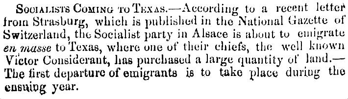 Here’s one of the first mentions of the impending arrival of Considerant’s group (the size of which was almost always exaggerated in early reports). (Click for larger image.)