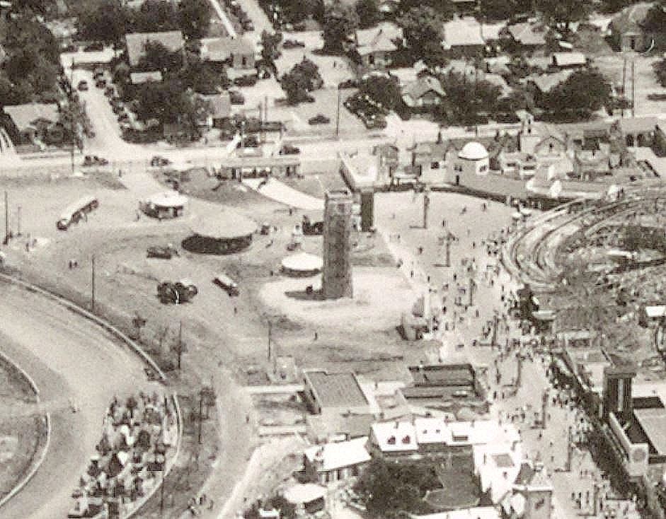 First two stereograph photos were taken in 1936 at the Texas Centennial Exposition and are from the DeGolyer Library, Southern Methodist University: “[Amusement Rides at Fair Park]” is here, and “[View of the Fairgrounds at Fair Park]” is here.