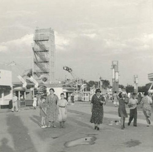 Because… what was that odd tower? No sleek, modern art deco architecture there! More like a looming hunk of something ugly and industrial. And it looked like it was relegated to the outer edge of the midway. What was it?