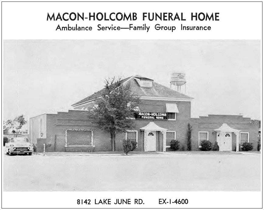 MACON-HOLCOMB FUNERAL HOME, 8142 Lake June Road. Still standing (as a different funeral home).