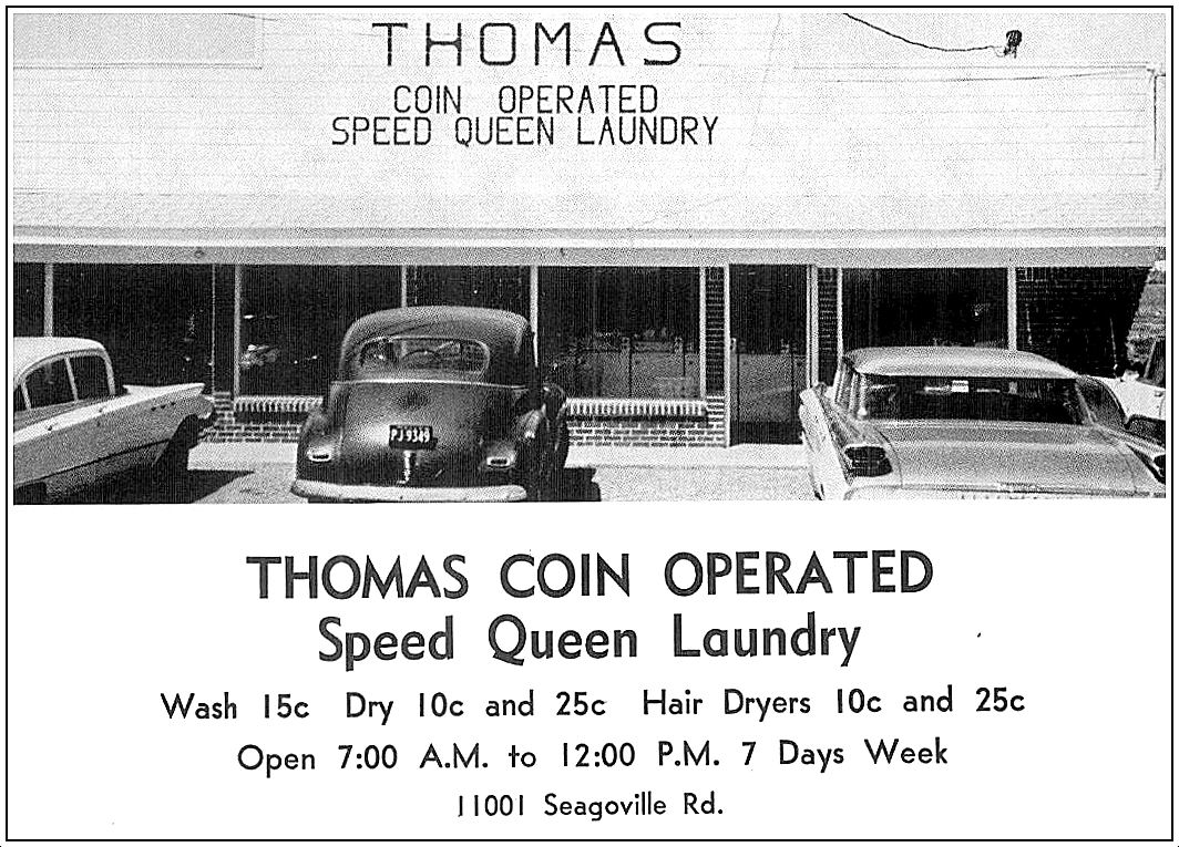 THOMAS COIN-OPERATED SPEED QUEEN LAUNDRY, 11001 Seagoville Road. (Laundromats once offered the use of hair dryers?)