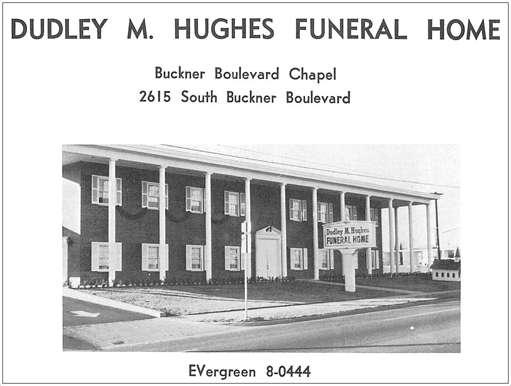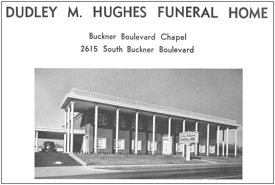 DUDLEY M. HUGHES FUNERAL HOME, 2615 S. Buckner Blvd. Still standing (as a different funeral home).