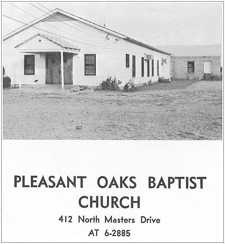 PLEASANT OAKS BAPTIST CHURCH, 412 North Masters Drive. Still standing in what looks to be a remodeled building. (The church has asked that I add a link to their website.)