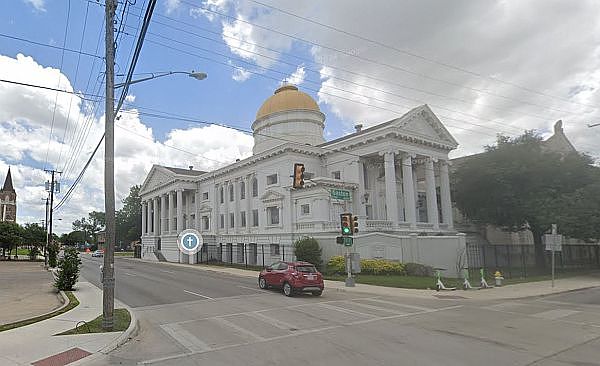 Top and bottom color photos of City Hall taken by Paula Bosse on October 23, 2025 from the Central Library.