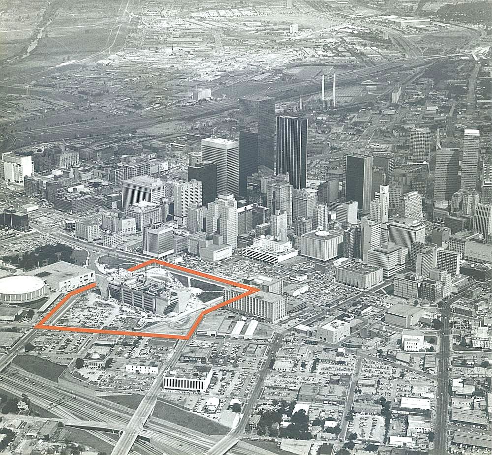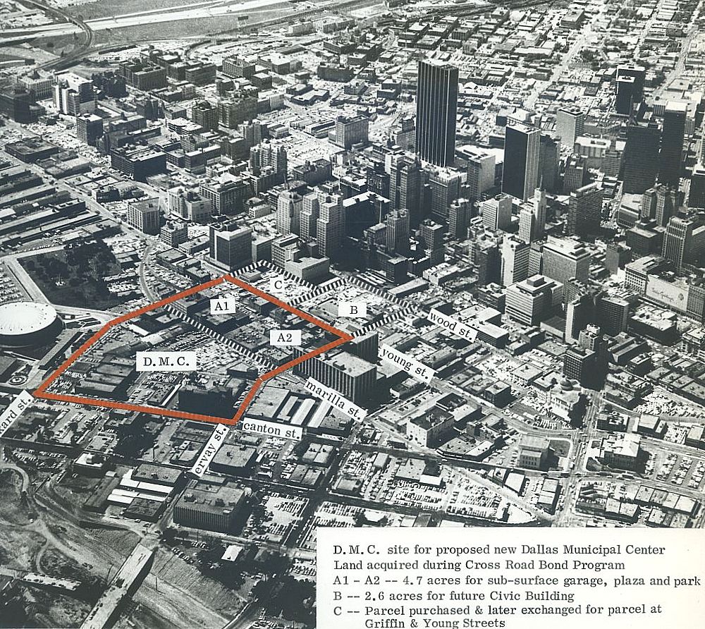 Aerial from 1967 (the original name of the project was the Dallas Municipal Center):