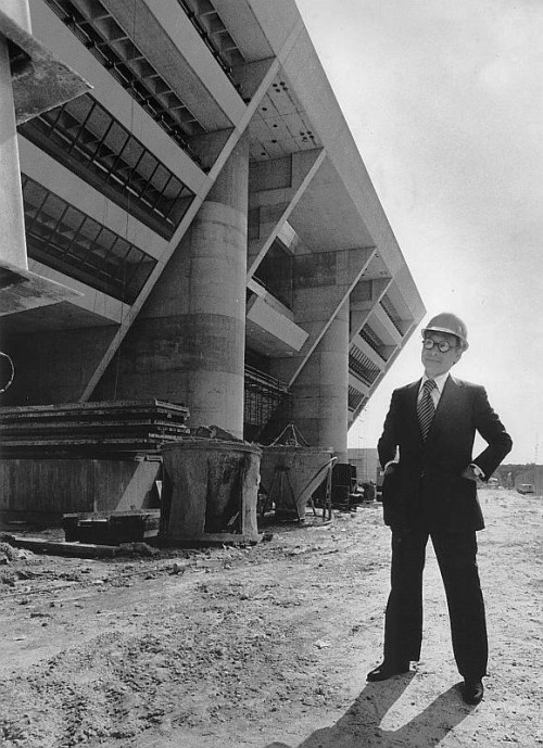 Below are a whole bunch of photos of I. M. Pei in Dallas, aerial views of the city before and during construction of the city hall, and two deceptively calm and quiet photos taken by me from the Central Library across the street only a couple of weeks ago, back when life seemed a little less precarious and before I thought it necessary to look up the dictionary definition of “beleaguered” to make sure I was using it appropriately. I was.