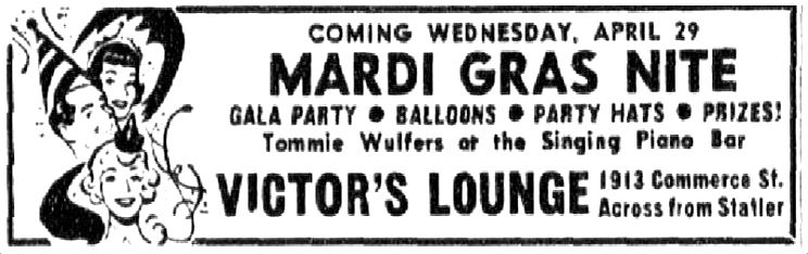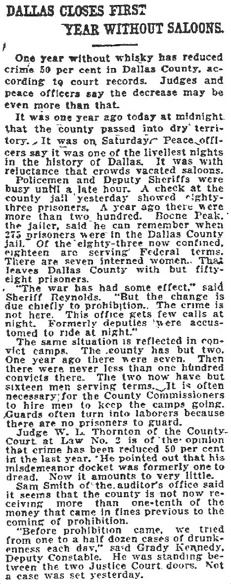 Alleging that the cabarets are conducted as “disorderly houses,” [charges were filed] on behalf of the State of Texas against owners of three restaurants in the downtown section. Affidavits accompanying the petitions alleged that women were allowed to drink at the places and to act in an unbecoming manner. (DMN, March 12, 1915)