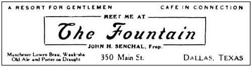 Meet me at the Fountain, a Resort for Gentlemen, 1518 Main Street, Dallas, Texas.