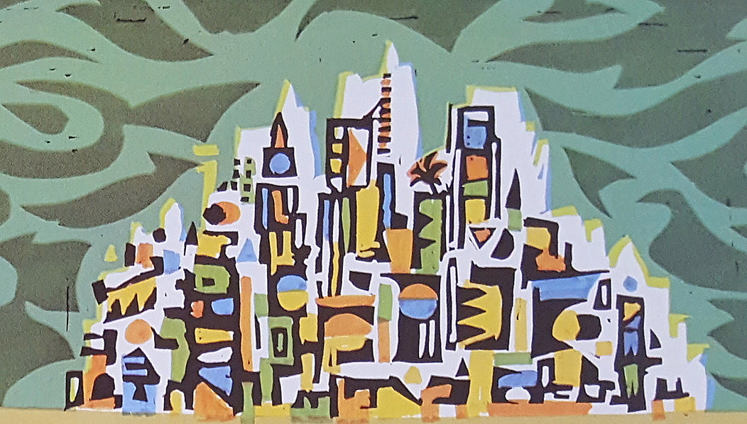 Here’s another urban scene, “Industrial Dallas,” with what looks like the Medical Arts Building in the background.