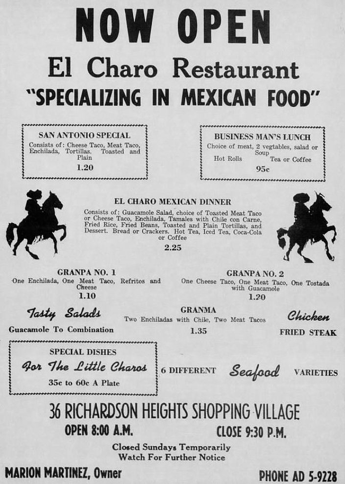 Salih’s Barbecue was opened by George and Jack Salih on March 20, 1953. The brothers had previously owned a small drive-in and later worked in or managed locations of Lobello’s in Lakewood (2005 Abrams) and Casa Linda (328 Casa Linda Plaza) — either before, during, or after these locations became “Fred’s” BBQ stands (owned by Fred Bell, founder of Kip’s).