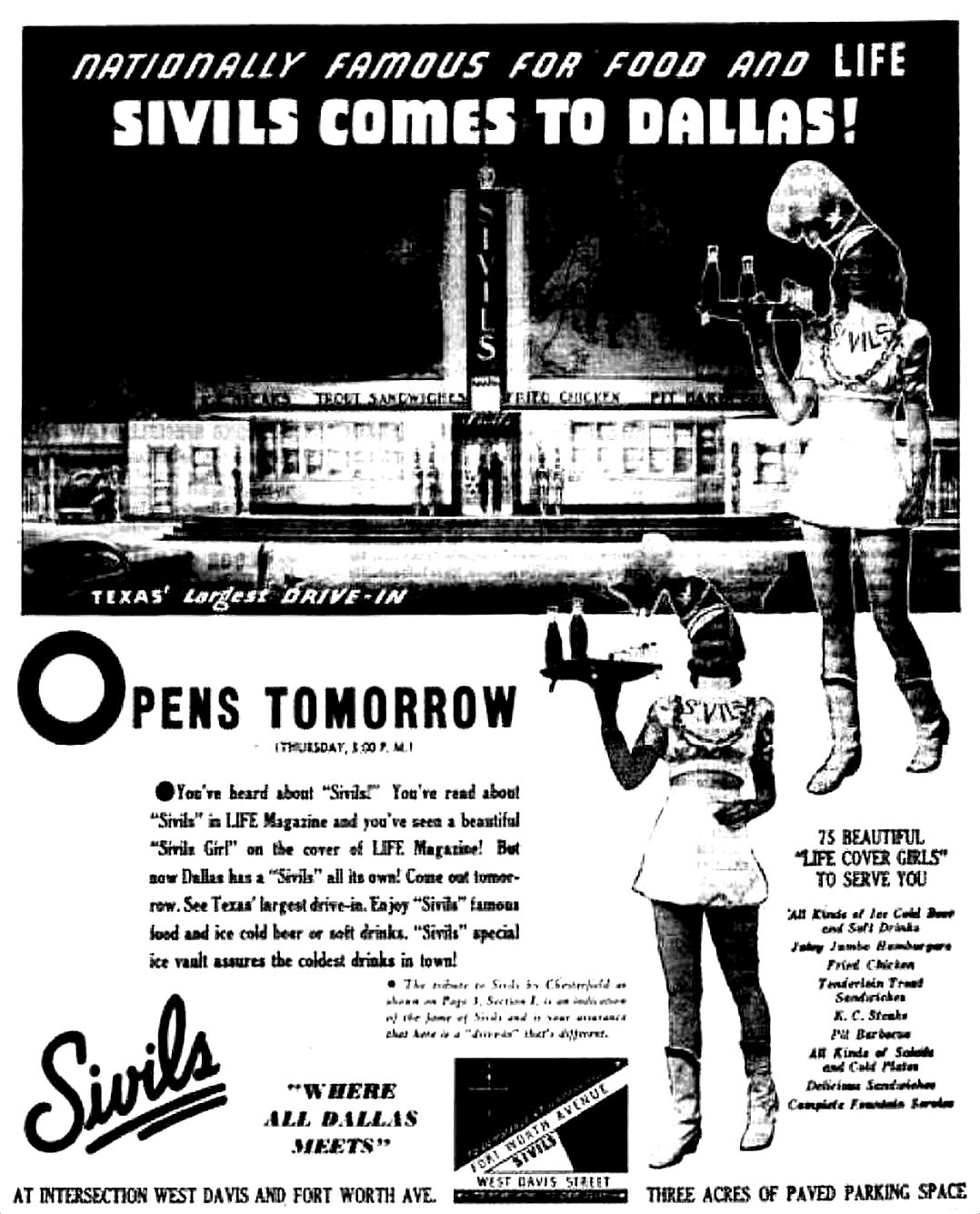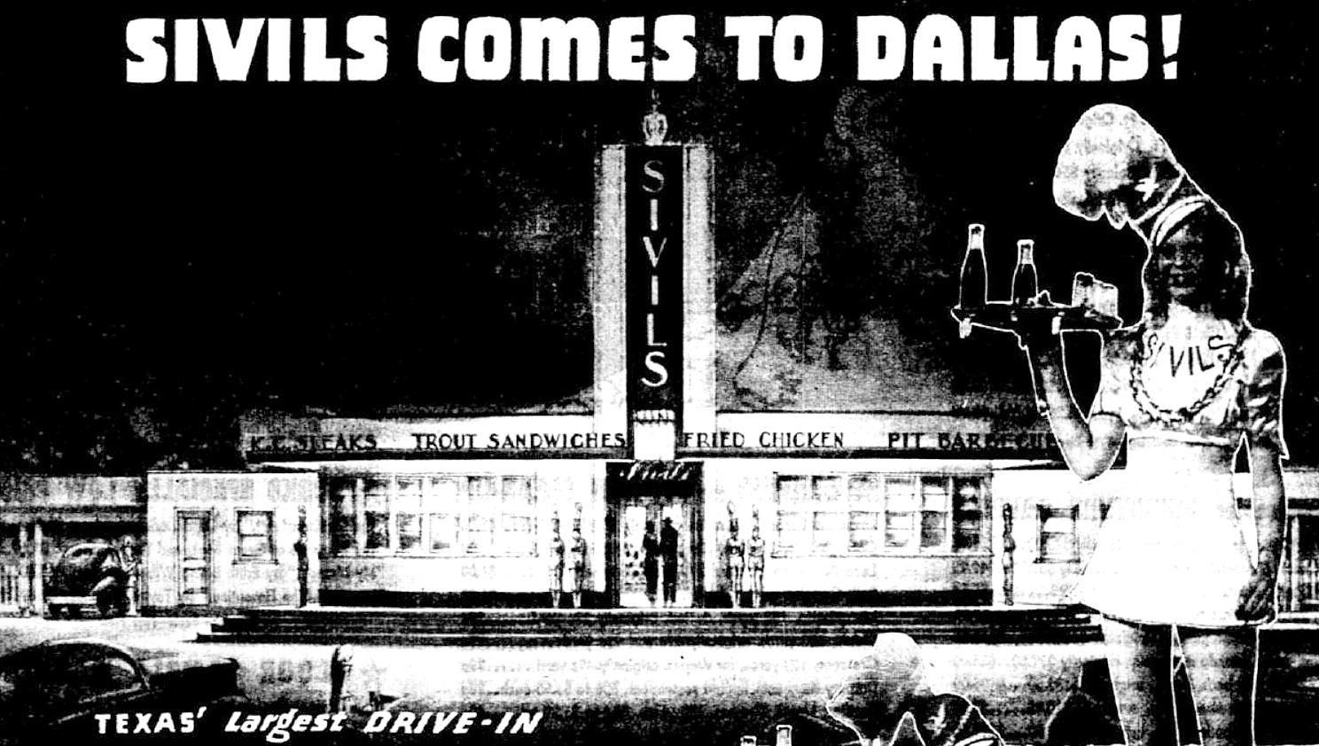 In 1940, Dallas was in a tizzy about the sudden fad of scantily-clad “girl carhops.” This scourge had made its way to Dallas from Houston (brought to Oak Cliff by the enterprising husband and wife team behind Sivils Drive-In), and in April of 1940, it was a newspaper story with, as it were … legs. For a good month or two, stories of sexy carhops were everywhere.
