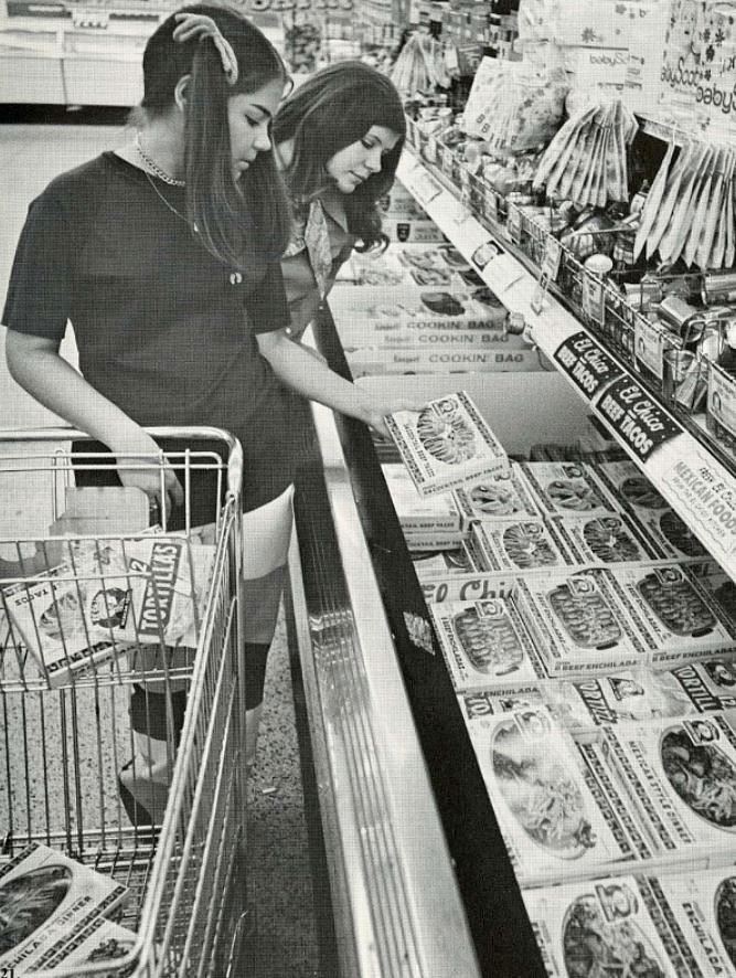 Along with the typical frozen dinners you’d expect, El Chico also sold frozen tortillas. In the photo above, there is a box of frozen tortillas in the shopping cart and in the freezer case. As I recall, I think I liked the frozen Mexican dinners as a kid, but frozen tortillas and tortillas in a can sound equally unappealing.