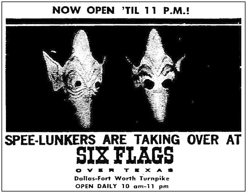 For those who might like more info on the Spee-lunker attraction/ride (which, by the way, is classified as a “dark ride” in amusement park lingo) at Six Flags Over Texas, here’s a bunch of links: