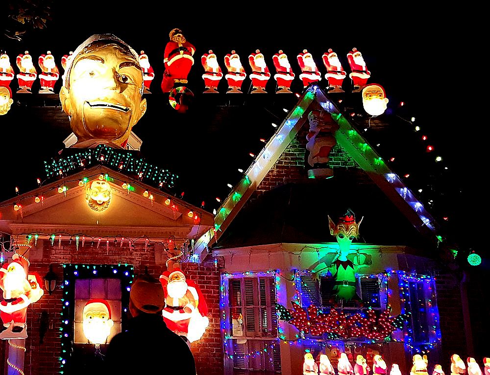 Photo of Wayne Smith’s Christmas display taken by me on January 2, 2016. The house is in the 3600 block of Southwestern, between Baltimore and Thackery. Since the display is probably visible from space, there’s no way you can miss it.
