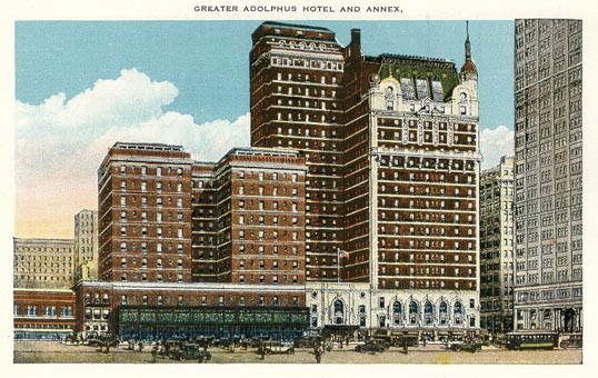 See a great early-’20s photo of the hotel building (the Tip-Top Tailors moved in around 1922) in the book Deep Ellum: The Other Side of Dallas by Alan Govenar and Jay Brakefield, here (the view is from Pacific to the southwest).