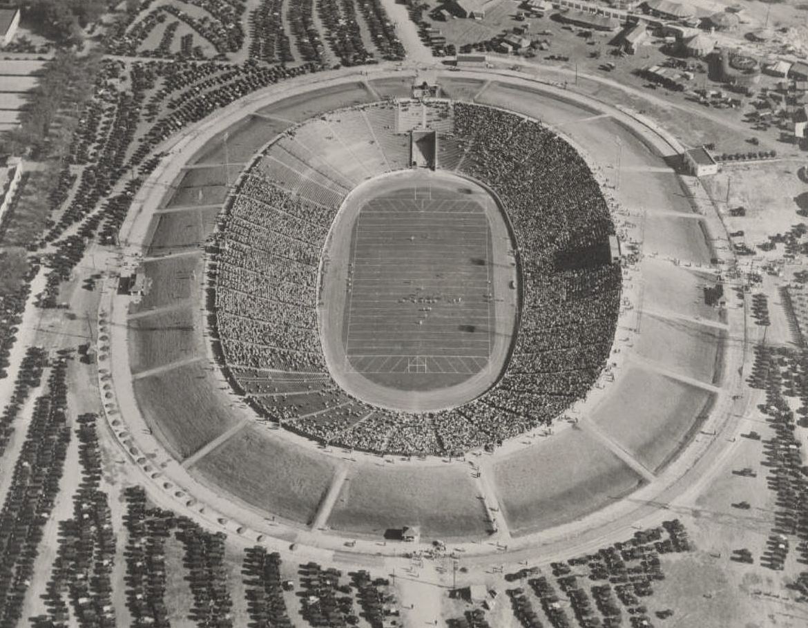 1920s: The “State Fair of Texas” stadium predated the Cotton Bowl. This aerial photo shows what was probably the University of Texas vs. Vanderbilt game, which took place on Oct. 13, 1928 during the State Fair of Texas. (Vanderbilt won, 13-12.)