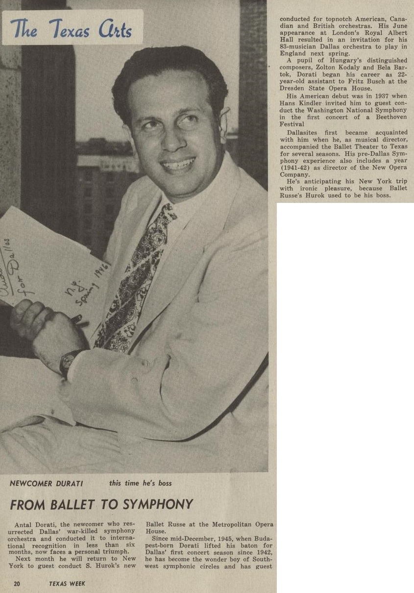 A typical article about the young, photogenic Dorati went something like the one below, in which Dorati was described as “the wonderboy of Southwest symphonic circles.”