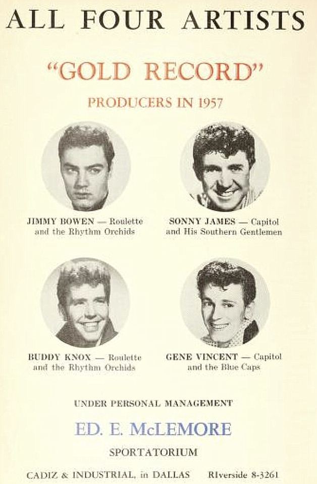Another performer who lived in the DFW area at the same time as Sonny James and who was also on the cusp of national stardom was Pat Boone, who had his own show on WBAP while attending college in Denton. Sonny and Pat were friends and even appeared on a few bills together. They were both also members of the Church of Christ, which both no doubt felt was an important bond. I wrote about Pat Boone’s time in DFW in the Flashback Dallas post “Pat Boone, Host of Channel 5’s ‘Teen Times’ — 1954,” here.
