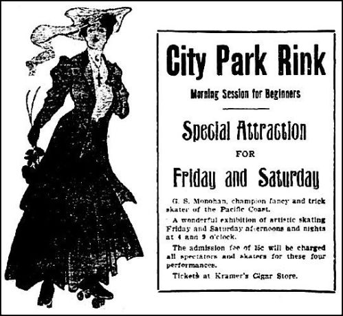 A wonderful exhibition of artistic skating Friday and Saturday afternoons and nights at 4 and 9 o’clock.