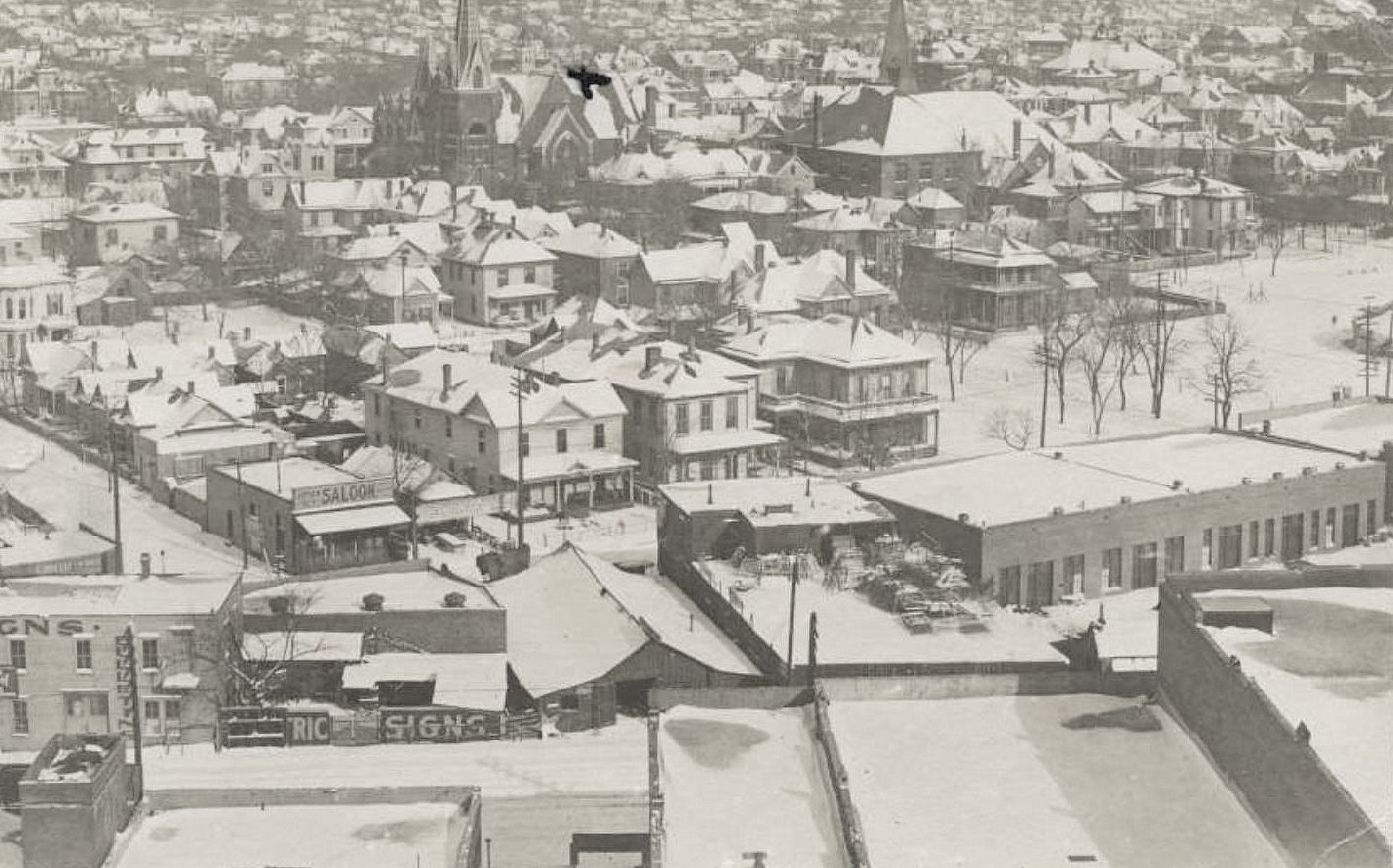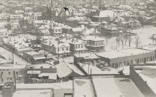 As I write this, we are still in a deep-freeze from a storm that rolled through several days ago. Sadly, it’s more ice than snow, and it’s taking forever for the streets to clear. Since you’re probably stuck inside, this seems like a perfect time to look back at another frosty scene of Dallas, from over a century ago. (See the link at the bottom of this post under “Sources & Notes” for a higher resolution, zoomable image at SMU’s digital collections site.)