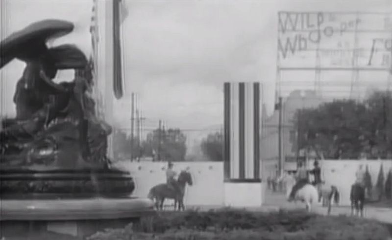 The shot of the billboard hovering over cowboys is a screengrab from the interesting-but-dull Gene Autry movie, The Big Show, shot mostly on the grounds of Fair Park during the Centennial. You can watch the full movie here.