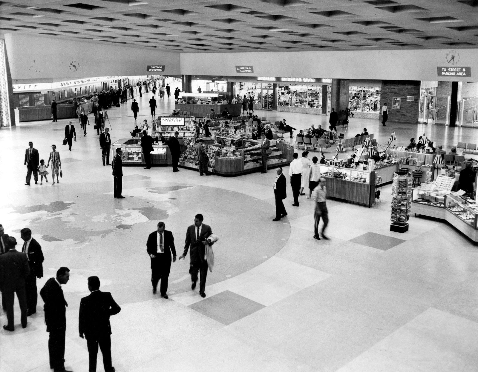 The restaurant and catering business were not all that the Dobbs company was running. Not only did they have a “swanky” restaurant at the new terminal, they also had a non-swanky restaurant and a basement cafeteria. They also had, at various times, control of the following concessions: cigar, shoeshine, gift shop (including apparel, candy, and camera shops), and … parking (!). This was on top of their land-office business catering and restauranting. James Dobbs knew a thing or two about business — he didn’t get fantastically wealthy just selling 15-cent cups of coffee and black-bottom pie….